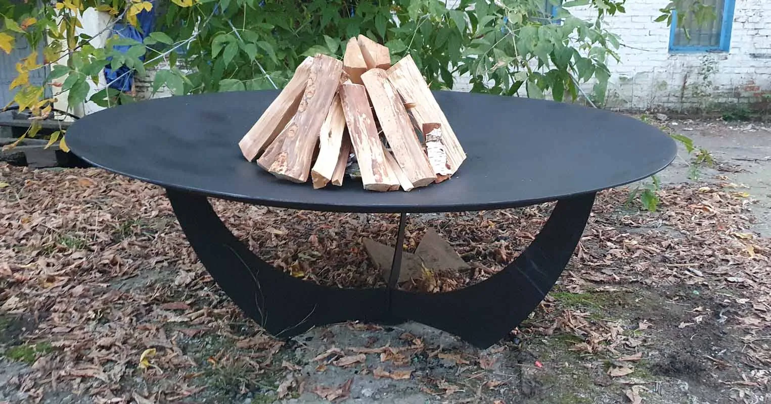 Диаметр костровой чаши 92 сантиметра, глубина чаши 10 сантиметров, толщина метала 6 миллиметров. Материал изготовления - конструкционная сталь марки Ст3.