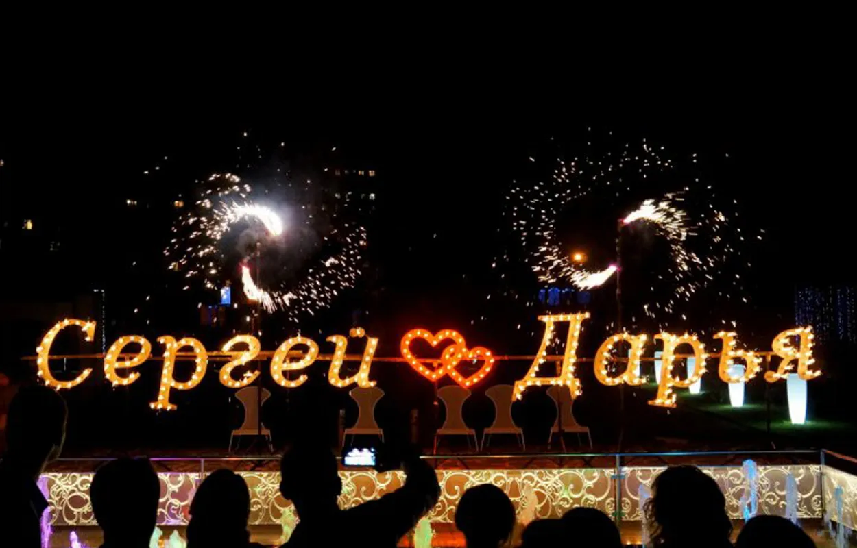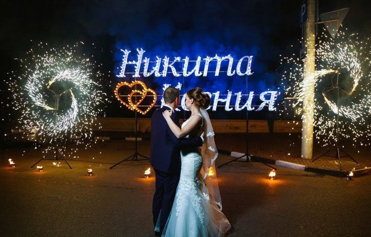 Огненные, горящие надписи на празднике – это яркий и запоминающийся фейерверк. Буквы и цифры пиротехнической надписи - это заметная и запоминающаяся часть пиротехнического представления. Пиротехническая надпись обычно является завершающим элементом фейерверк представления. Огненные надписи мы собираем из элементов разной высоты - от 50 до 120 сантиметров: буквы, цифры, логотипы, разные фигуры, в том числе и фигуры в форме сердец. Пиротехнические надписи – слова горят от 40 секунд до 5 минут и пользуются устойчивым спросом у заказчиков фейерверк шоу, готовых оставить себе в торжественный момент завершения праздника эффектное фото – видео на фоне горящей пиротехнической надписи